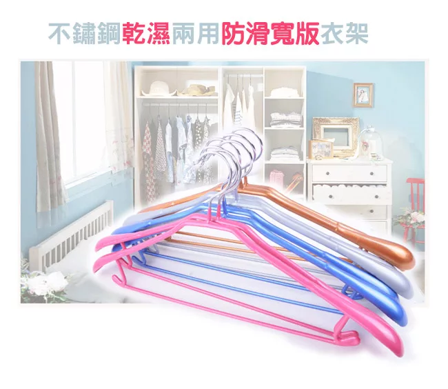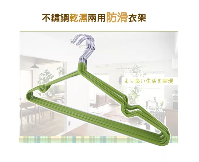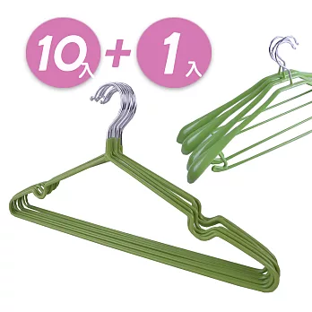 出國收納盒>超值10+1不鏽鋼乾濕兩用防滑衣架(細10入+寬1入)-綠色